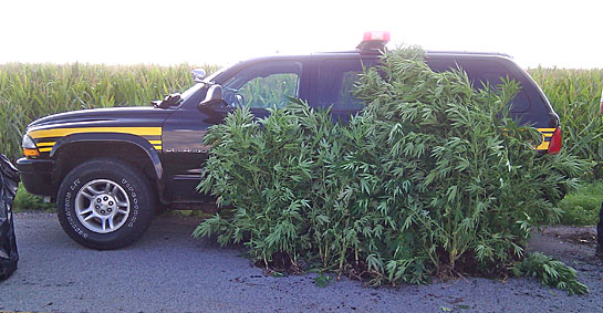 Van Wert County Sheriff Stan Owens advised that deputies on Tuesday participated with West Central Ohio Crime Task Force units and agents of the Ohio Attorney General’s Office in an aerial marijuana eradication effort. The Attorney General’s Office provides aircraft for the eradication effort, which resulted in 145 marijuana plants being found at five separate locations in the county. Each plant at full maturity would have a street value of approximately $1,000, making the total value of the seized marijuana approximately $145,000. The sheriff said the marijuana was spotted in farm fields and around a county residence. One man is being charged with a second-degree felony charge in connection with the marijuana find, with the investigation continuing. (VW Sheriff’s Dept. photo)