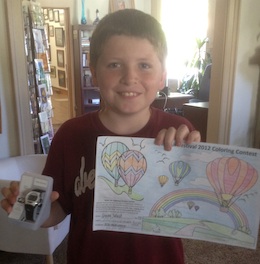 The Hot Air Affair coloring contest winners are as follows. Congrats, kids, and good work! We can’t wait to see what you come up with next year.
