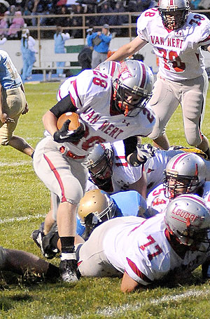 Van Wert scored its only touchdown early in the first quarter as Lloyd ran the ball in from 4 yards out at the 10:27 mark of the first quarter. Terrin Contreras kicked the extra point and it was 7-0, Cougars leading.