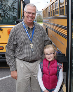 Shown is Crestview bus driver Dave Springer with elementary student Hannah Schmiesing. (Crestview photo)