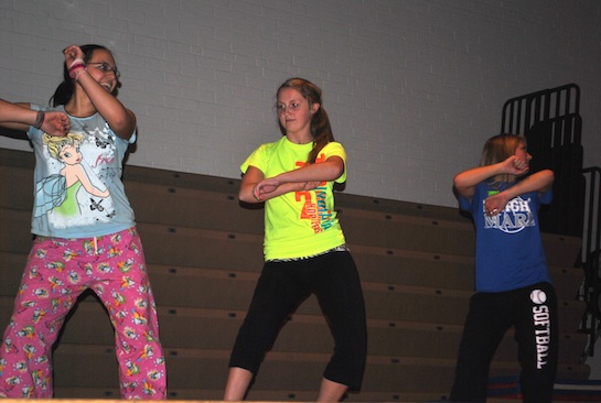 FCCLA members Chelsea Gephart, Reghan Waltmire and Brooke Bowen perform their combination that they choreographed for the dance contest during the FCCLA lock-in. Each member participated in the contest and made up their own dance. (Photo submitted.)
