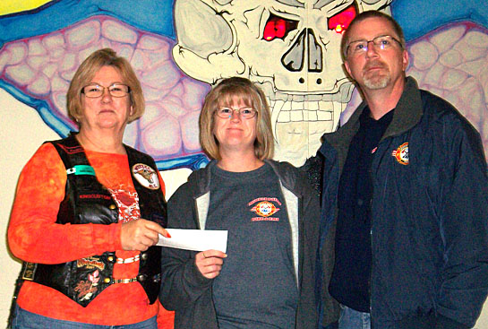 Wetzel Motorcycle Club recently donated funds to the Middle Point Fire/EMS. Here, Rick and Candi Busch of the Middle Point Fire/EMS receive a $1,000 donation from a Wetzel MC member. (photo submitted)