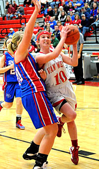 After being held to 6 points against Ottoville, the Lady Cougars’ Erin Morrow, a sophomore, exploded for 14 points, including two treys and a 4-for-5 performance at the free-throw line, against Wayne Trace, while junior Hannah Hulbert added 11 for Van Wert. Krystal Wannemacher led the Raiders with 11 points, with Lauren Speice adding 10 points for Wayne Trace.