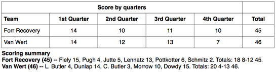 The Van Wert Lady Cougars knocked off Fort Recovery, one of the Midwest Athletic Conference’s top girls’ basketball teams, 46-45 in a non-conference melee on Saturday in the Cougar’s Den. The Cougars are now 5-6 on the year, while the Lady Indians fall to 9-2 overall.