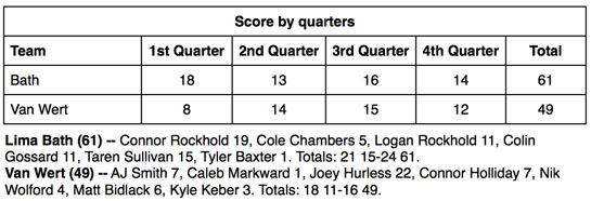 Van Wert also had nearly double the turnovers of Bath (11-6), although rebounds were about even at 27-29, in favor of Bath.