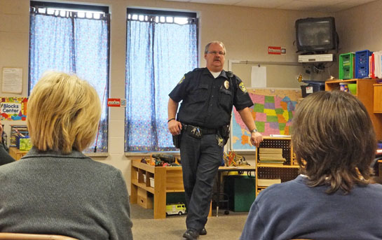 Van Wert City Police Officer Greg Blackmore recently conducted a Safe Schools inservice to the staff at Thomas Edison Early Childhood Center. The staff was trained on best practice protocols for emergency situations that could include unwanted intruders in the building or on the school grounds. (photo submitted)