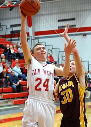Oddly, it wasn’t the Cougars’ main scorers, AJ Smith and Joey Hurless, who made the biggest impact against Kalida. With Smith held to 9 points in the game and Hurless to just 5 points, sophomore Connor Holliday stepped up to score 16 points in the game, while junior Kyle Keber added 12 for Van Wert.