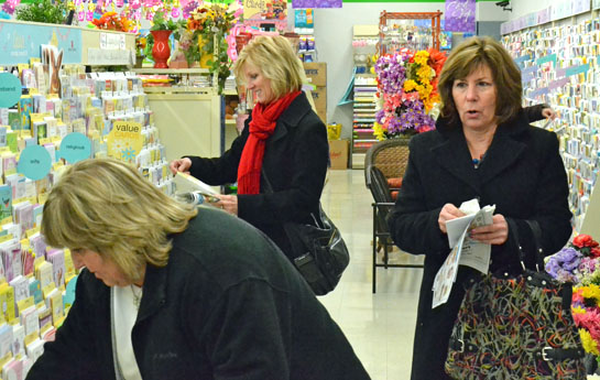 The Van Wert Cash Mob showed up at Derry Drugs on Thursday evening, providing the local business with some extra sales during the Easter season. Cash mob members then went to the El Mexicano Restaurant to vote for the next mob site. (Dave Mosier/Van Wert independent)