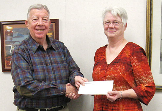 The Van Wert County Foundation recently awarded a grant of $1,000 to the Van Wert County Agricultural Society for entertainment and events at the annual Van Wert County Fair. The grant was made from the Charles E. Eggerss Fund. The grant will be used to provide free entertainment and events at the 157th edition of the fair, which will be held Wednesday, August 28, through Monday, September 2. Here, Foundation Executive Secretary Larry Wendel presents the grant check to Fair Board Director Ann Marshall. (Fair Board photo)