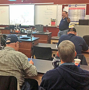 Veteran EMS medic Tony Stimpson (standing) teaches a class on trauma for local EMTs at Vantage Career Center. (photo submitted)