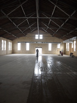 Speaking of light and color, the new windows are due to arrive at the Armory and the concrete floors are taking shape as Nick Dancer and his crew from Dancer Concrete, Fort Wayne, Indiana, polish the surfaces into a sleek almost-like-granite condition. Color will be applied when the floors are completely prepared and we can’t wait to help with that, brushes in hand! By the way, do you have any vintage lighting collecting dust in your attic?