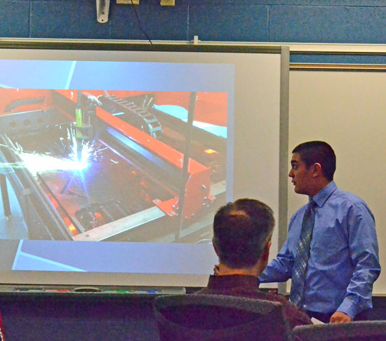 Industrial Mechanics student Aaron Contreras provides information on the school's "Ed Gee" project. (Dave Mosier/Van Wert independent)