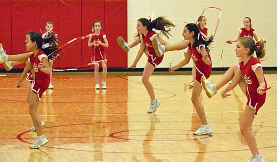 The Pop Rocks (above), a jump rope team from Troy, perform during Thursday’s Family Get Movin’ Night at Van Wert Elementary School. The event also included a number of fitness and health stations for the large number of families that participated, along with a “cook off” by fifth-graders and prize giveaways. (Dave Mosier/Van Wert independent)