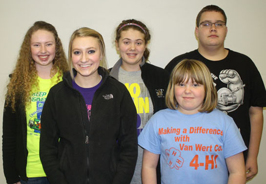 The Van Wert Bunny Hoppers 4-H club held its second meeting on March 7, and learned how to identify and choose the best rabbit breed for a person. The spring rabbit show will be April 21 and many volunteers will be needed, especially for the kitchen. A change this year for 4-H projects is, if club members choose to do a market rabbit project, they must also do a breeding rabbit book as well (members can do just a breeding rabbit). Libby Price also conducted a demonstration on Mini Satins, while people wanting to make a donation to the rabbit barn can contact Chris Heizman. Updates to meetings and events can be found at www.vanwertrabbit.org. The next meeting will be March 28 at the OSU Extension office, with a discussion on rabbit judging planned. Above are 2013 club officers (front row, from the left) Katelyn Welch, president; and Alison Hauter, historian/reporter; (back row) Sara Klinger, secretary; Maddy Lamb, treasurer; and Joel Germann, vice president. Not shown is Abby Bradford, health and safety officer. (photo submitted)