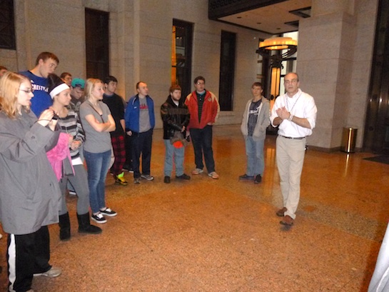Seniors listen to their tour guide at the state capital building on their senior government trip. Photo by Kate Bauer.