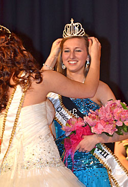 Jordan Rex was excited to be named the talent winner during Friday night’s Peony Festival Pageant at the Marsh Foundation Auditorium. That didn’t compare, though, to having the crown of Queen Jubilee XXXVIII placed on her head a moment later by 2012 queen Alex Burchfield.