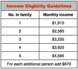 - Income eligible based on the family size at 200 percent of 2013 Federal Poverty Guidelines (see table at right).