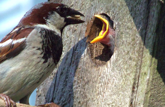 Local amateur photographer Keith Langdon took this photo of a house sparrow feeding her young on the deck of his house. Langdon noted that seeing the birds was “evidence of the coming of summer.”