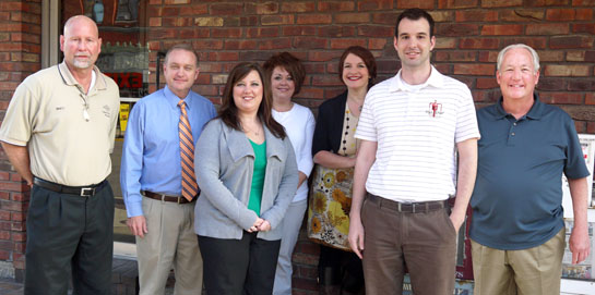 Five local insurance agents recently sponsored Main Street Van Wert Program Manager Adam Ries’ attendance at the National Main Street Conference in New Orleans. The three-day conference, hosted by the National Trust for Historic Preservation, centered on fostering a cultural economy as part of an overall downtown revitalization program, and came at a perfect time for Main Street Van Wert to attend because of creative entrepreneurs looking at downtown Van Wert and renovation of the former armory into Wassenberg Art Center. Sponsors include Leland Smith Insurance Services, Merkle Insurance Agency, Purmort Brothers Insurance, Rhoades Insurance Agency, and Thatcher Insurance. Wassenberg Director Hope Wallace also attended the conference. Shown are (from the left) Brett Thatcher, Randy Myers, Leah Purmort-Treece, Michele Purmort-Mooney, Hope Wallace, Adam Ries, and Jim Rhoades. Not pictured is Kevin Merkle, who was unavailable for the photo. (photo submitted)