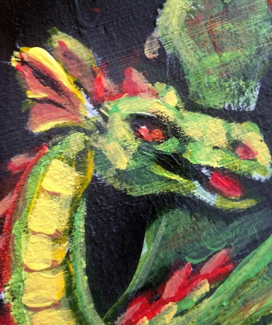 Detail of flame and dragon themed stool to be auctioned at ArtRageous. Stool painted by Kay Sluterbeck of Van Wert. (Photo submitted.)