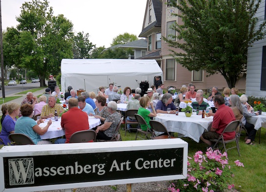 If you happened to be around South Washington Street after the Peony Parade last Saturday night you may have been privy to a rock concert on the lawn of the Wassenberg Art Center, celebrating our award-winning artists at the 57th Annual June Art Exhibit. This will be the last June show reception held at the Charles Wassenberg home, because next year it will be held in the Van Wert Armory. We think we sent the event off in grand style. The reception included a delicious array of refreshments, with barbecued pork provided by Collins Fine Foods. Many thanks to all our volunteers who assisted with kitchen duty for the event.