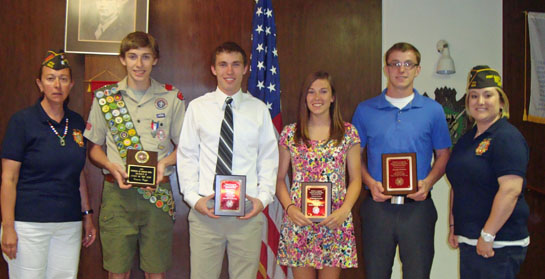 Veterans of Foreign Wars Post 5803 in Van Wert recently presented its Athlete of the Year awards. The winners this year were Kaitlyn Brant, “Female Athlete of the Year”, and Joseph Hurless, “Male Athlete of the Year”. Runners-up were Courtney Perrott and Joel Genter. Also recognized was the Ohio VFW District 2 “Scout of the Year” Travis Lippi. The evening included a spaghetti dinner that was enjoyed by the awardees, their families and several officers and members of the Post. The awards were given to the recipients by District 2 Commander William Short, Post Commander Colleen Wiley and Award Chair Ashley Showalter. Shown are (from the left) Commander Wiley, Travis Lippi, Joel Genter, Courtney Perrott, Joseph Hurless, Ashley Showalter. (VFW photo)