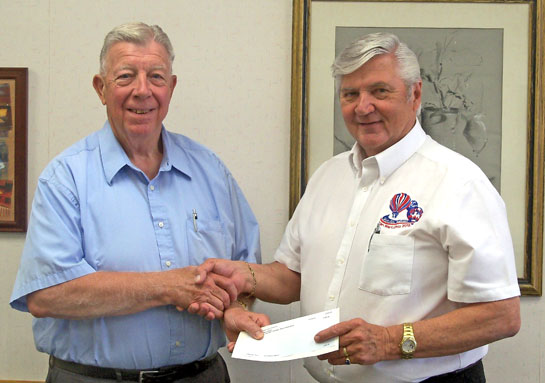 Larry Wendel, executive secretary of The Van Wert County Foundation, presents Jerry Mazur, Hot Air Festival organizer, with a check to be used to provide musical entertainment at this year’s Hot Air Festival, which is planned for September 6-8. (photo submitted)