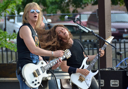 Bostyx (above) brought its fusion of high-energy music from rock supergroups Boston and Styx to Fountain Park on Friday evening as a large crowd showed up to revel in the glorious weather … and great music. (Dave Mosier/Van Wert independent)