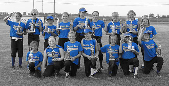 The Middle Point Farmette travel team finished its undefeated season at 8-0, capturing the league championship. Members of the team include (front row, from the left) Makayla Jackman, Aryonna Hoghe, Heather Beair, Olivia Lauf, Katelyn Beair, Courtney Minyoung, Katrina Behrens; (back row) Annie Mendenhall, Brianna Ebel, Alivia Carpenter, Kendall Bollenbacher, Winter Boroff, Noel Warnement, Madysen Glosset, Destiny Coil, and Andrea Webb. Not pictured were coaches Steve Bollenbacher, Brad Mendenhall, and Jeremy Ebel. (photo submitted)