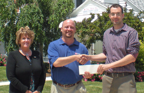 US Bank recently became a supporting partner of Main Street Van Wert through a contribution to the downtown development non-profit organization. Shown are Jamie Wurstner and Craig Bell of US Bank presenting a check for $250 to MSVW Program Manager Adam Ries. “We are excited to have US Bank as a new supporting partner,” said Ries. Main Street Van Wert relies on local residents and business partners to continue economic and preservation initiatives within downtown. (MSVW photo)