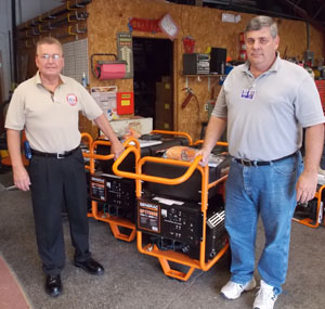 Van Wert County EMA Director Rick McCoy (left) and Mercer County EMA Director Mike Robbins with some of the generators purchased using Department of Homeland Security grant money. (photo submitted)