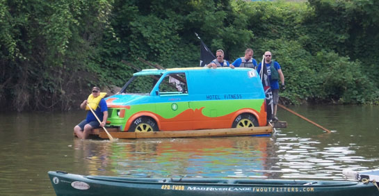 A few “good ol’ boys” from Van Wert recently participated in the Three Rivers Raft Race during the Three Rivers Festival in Fort Wayne, Ind. The “A-Billys” (Alan Art, Andy Tracy, Adam Brower and Craig Black) successfully completed the two-mile course in a converted Chevrolet Astro van that looked suspiciously like the “Mystery Machine” of Scooby-Doo fame. They received third place in their division. The A-Billys also thanked all their supporters, with special thanks to Ohio City Auto Salvage for lending them a “really cool raft build.” (photo submitted)