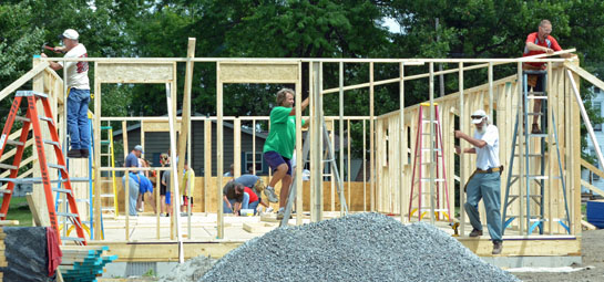 A large number of volunteers was busy Saturday working on the latest Habitat for Humanity house, which is located on George Street in Van Wert. (Dave Mosier/Van Wert independent)