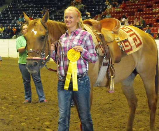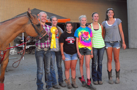 Young Riders 4-H Club member Paige Motycka (above) won third place in the stakes class at the Ohio State Fair with her horse. Some members of the Young Riders 4-H Club made the trip to Columbus to see their friends compete at the State Fair. Shown are (from the left) Paige Motycka, Reagan Priest, Kylee Agler, Cassie Priest, Lindsey Motycka and Emily Bauer. (4-H photo)