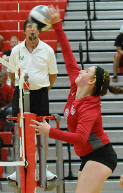 Serving – Claire Gamble, 23/23 with 3 aces; McKenna Merkle, 18/18; Amanda Coplin, 17/19 with 2 aces; and Riley Jones, 15/15 with 3 aces.