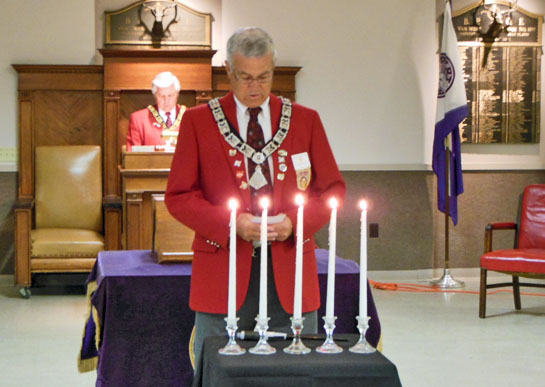 Van Wert Lodge 1197, Benevolent and Protective Order of Elks, held a 9-11 Service of Remembrance on Tuesday evening, September 10, at the Elks Lodge. The service paid tribute and respect to all those who lost their lives on September 11, 2001, and also honored all members of the United States armed forces who have served their country and those who are serving at this time. Candles were lit in memory of all who perished. American citizens must never forget those who lost their lives on that fateful day. Shown is Lodge Chaplain Larry Miller leading the group in prayer. (Elks photo)