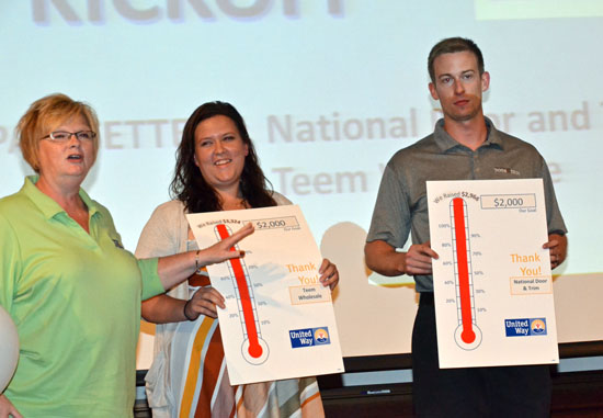 Pacesetter company representatives Roy Salisbury of National Door & Trim and Heather Germann of Teem Wholesale both talked of their companies’ efforts to meet their fundraising goal for the current campaign.