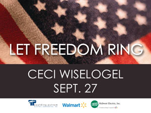 Ceci Wiselogel presents a spirited program this Friday, September 27, at 1 p.m., that illustrates patriotism at its finest.