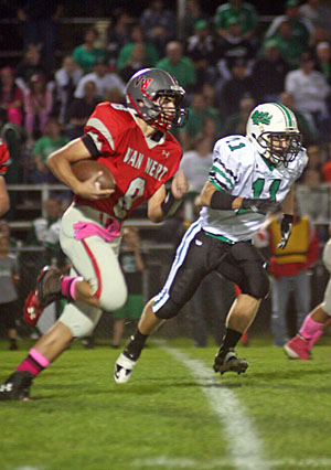 Cougar quarterback Colin Smith was knocked out of the game with a sprained ankle and Drew Myers came in to quarterback Van Wert.