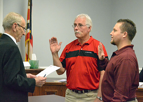 First, two Council At-Large members who could not make it to a formal swearing-in ceremony last month — newly elected Jon Tomlinson and Brent Crone, who was re-elected in November 2013 — were sworn into office by Mayor Don Farmer.
