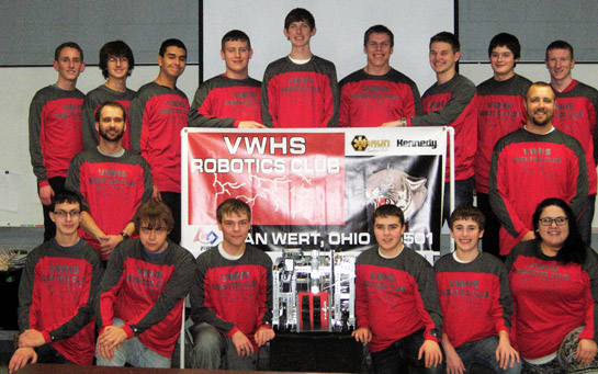 The Van Wert High School Robotics Team competed in an USFirst Robotics Competition in northern Indiana this past weekend and did extremely well. Although the local team did not win the competition, it did win the award for the best-designed robot, qualifying Van Wert’s team for the Indiana State robotics championship. Shown are team members and coaches. (VWCS photo)