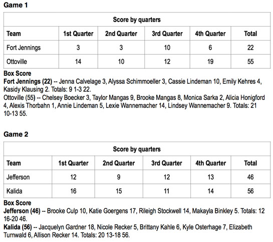 Putnam County schools Kalida and Ottoville were winners in Division IV girls’ sectional tournament basketball games played at Van Wert on Wednesday.