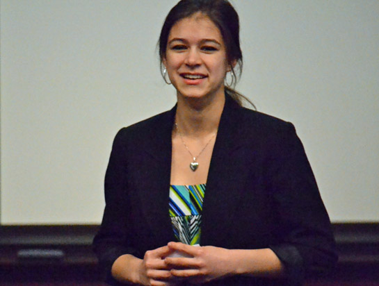 Rotary District 6600 held its district Four Way Test competition in the First Federal Lecture Hall of the Niswonger Performing Arts Center on Saturday. Here, Van Wert contestant Ann Brake gives her speech on Rotary’s Four Way Test.(Dave Mosier/Van Wert independent)