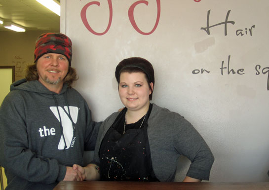 JJ’s Hair on the Square will be sponsoring a $1 day at Camp Clay Aqua Park this summer. Local businesses purchase the day for the Van Wert community, access includes swimming, floating playground, zip-line, paddleboats, and a half-acre beach. To learn more, visit www.vwymca.org. Shown is Leslie Clark, a cosmetologist at JJ’s Hair on the Square, along with Camp Clay Aqua Park Director Clint Myers. (YMCA photo)