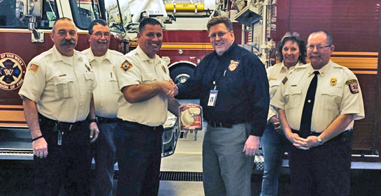 Also shown are (from the left) Van Wert Fire Chief Jim Steele, Willshire Fire Chief D’wight Sheets, Wren Fire Chief Jackie Brandt and Convoy Fire Chief Gary Kreischer. (photo submitted)