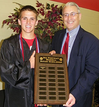 The Van Wert Rotary Club provides an annual scholarship to students at all Van Wert County schools. As of this year, the scholarship has been renamed the Dee Whitcraft Memorial Rotary Scholarship and Rotarian Dave Roach presented the scholarship to Adam Jurczyk.