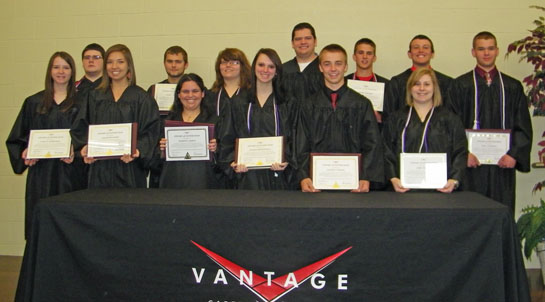 A full house, including home school representatives, family, and friends, joined together at the annual Awards Assembly on Tuesday to recognize the achievements and accomplishments of senior students enrolled in Vantage career technical programs. Awards of Distinction and scholarships highlighted the event and juniors put technology to the test as they watched the assembly via “live video streaming” from classrooms.