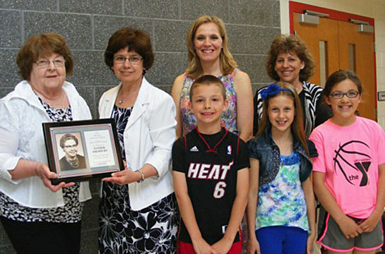 Marilyn Merkle donated document cameras for all the third grade classrooms at Van Wert Elementary School. This donation was in memory of her mother, Esther Sherburn, who was a caring and devoted third grade teacher for Van Wert City schools. Shown are Merkle, VWES Principal Beth Runnion, third-grade teachers Marty Hohman and Laura Etter and third grade students Justin, Kayla, and Maria. (VWES photo)