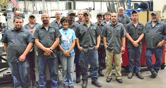 Elmco Engineering employees pose this week at the company’s facility on Grill Road. The company, which is a leading manufacturer of new and rebuilt powdered metal presses, recently donated $500 in funding for the YWCA’s summer food program.(Dave Mosier/independent)