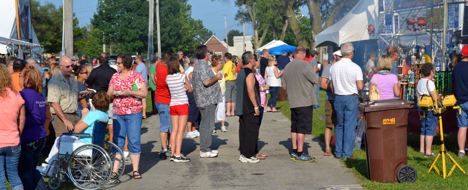 RIB FEST UNDERWAY — Great weather brought out a good crowd Friday for the opening of the eighth annual Van Wert Rib Fest at the Van Wert County Fairgrounds. Here a long line of people is waiting for ribs and other foods from the Smoke Shack rib vendor. Activities continue today at the fairgrounds. (Dave Mosier/Van Wert independent)
